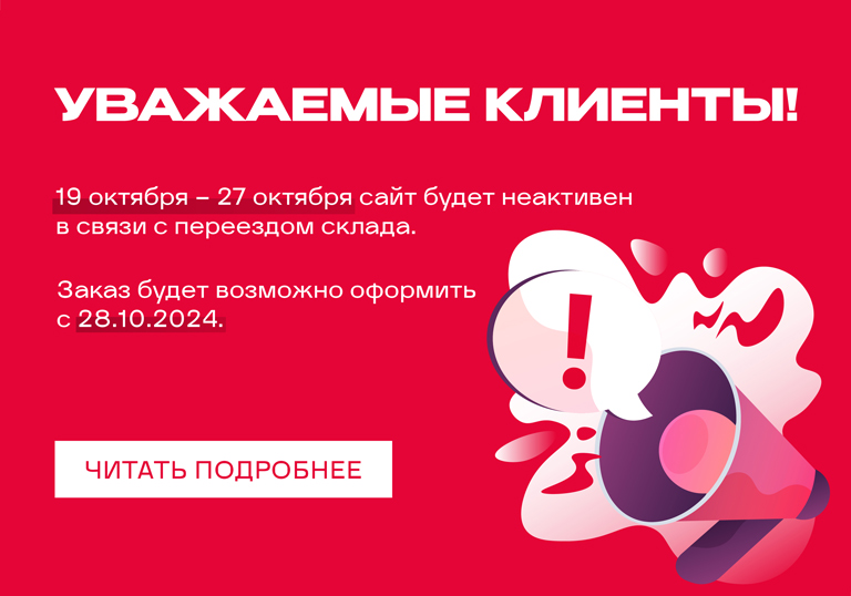 С 19 октября по 27 октября наш сайт будет временно недоступен в связи с переездом склада.